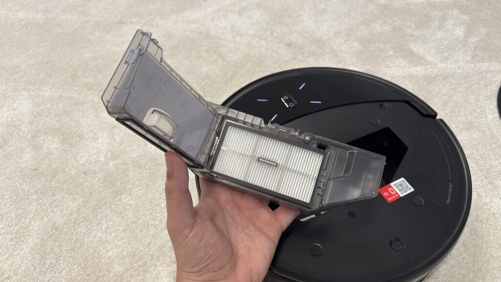 Keďže tu nie je robotické rameno, výrobca mohol použiť väčší zásobník na prach. Bol to rozumný krok, pretože takto zvládne aj väčšie byty s jediným vysypaním.