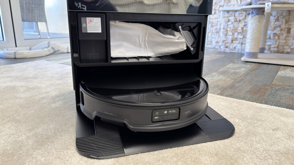 Po každom upratovaní sa robot vráti do stanice, kde mimoriadne účinný vákuový systém – v podstate externý vysávač – zabezpečí, že z vnútorného zásobníka sa všetok prach, špina aj vlasy presunú do vonkajšieho prachového vrecka.