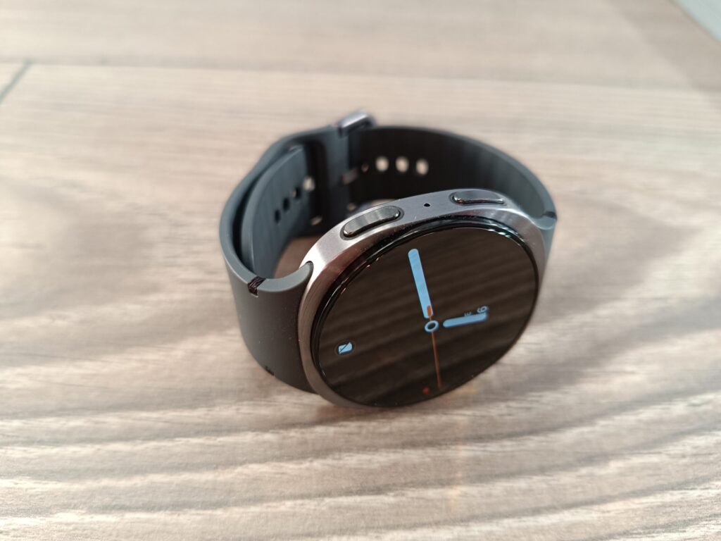 Hneď ako sme vzali hodinky do ruky, bolo jasné, že Samsung sa pri dizajne pustil na úplne novú cestu. Klasický okrúhly tvar puzdra totiž zmizol – hoci samotný displej ostal kruhový, telo hodiniek pod ním dostalo hranatejšiu podobu.