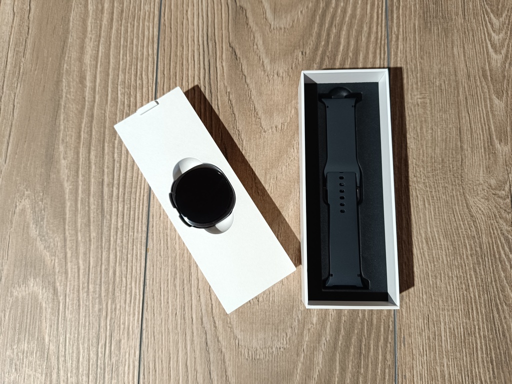 Vo vnútri nás čaká samotné telo hodiniek, uložené v samostatnom lôžku. Pod ním nájdeme zvlášť remienok a v druhej malej krabičke používateľský manuál – samozrejme v slovenčine – a nabíjací kábel. Ten má na jednej strane USB-C konektor a na druhej magnetickú koncovku, ktorá sa pripája na zadnú stranu hodiniek.